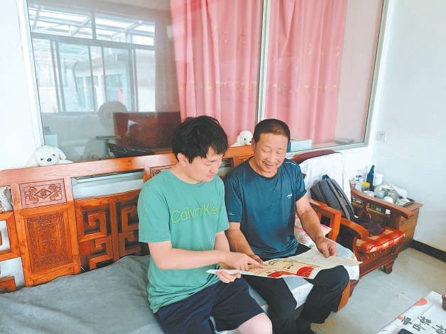 本报记者(左)走访张福宽烈士的亲属。 王有才摄